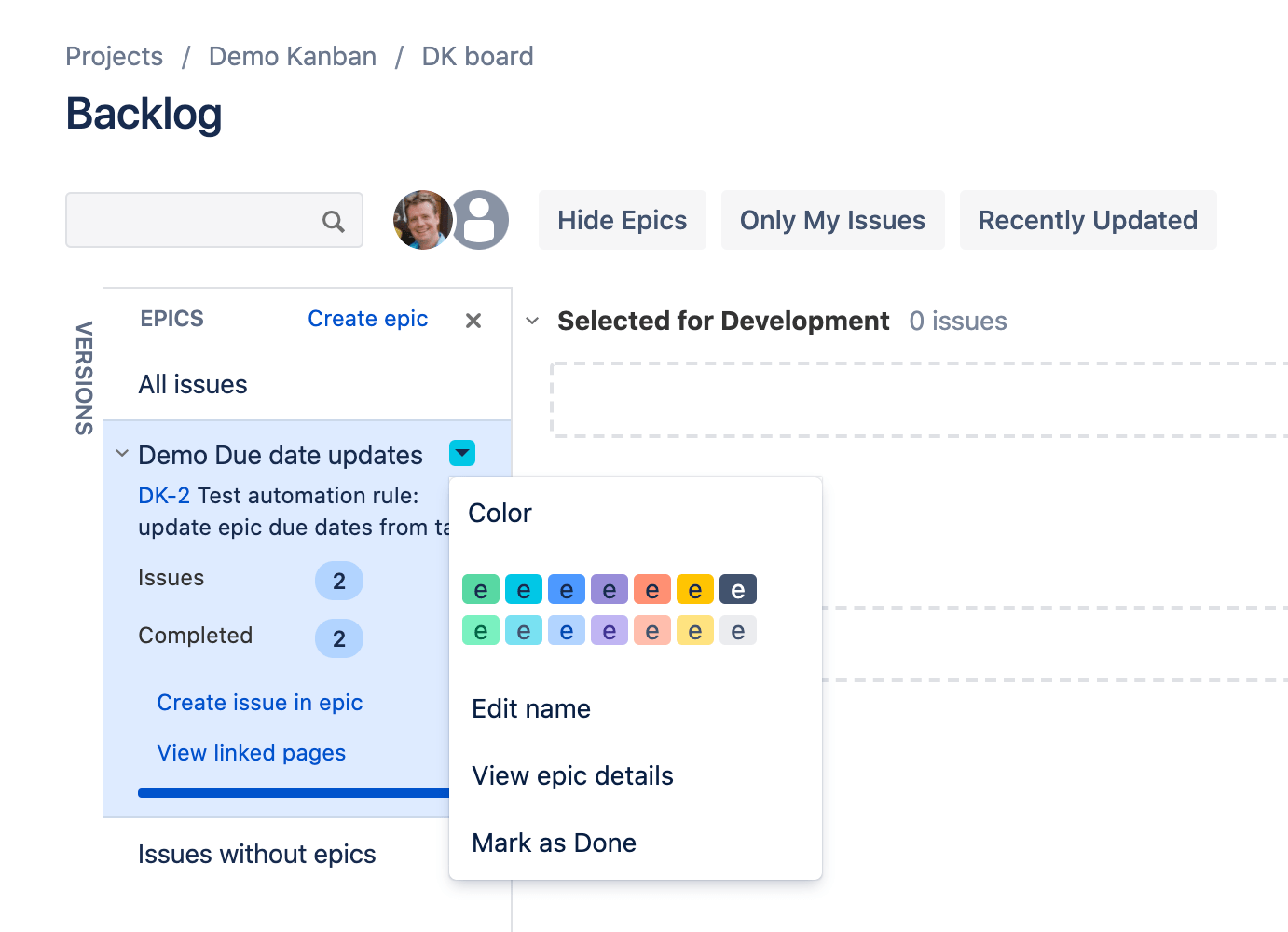 Jira Epic Color Kanban Epic update